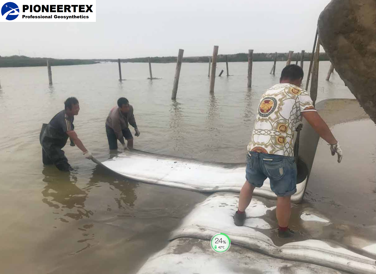 Cement Canvas GCCM was made of 3D spacer fabric and Glass roving woven geotextile or HDPE geo-membrane. The specially formulated dry concrete powder mix will be reinforced by 3D spacer fabric in the middle, and covered by glass roving geotextile or water-proof HDPE geo-membrane.